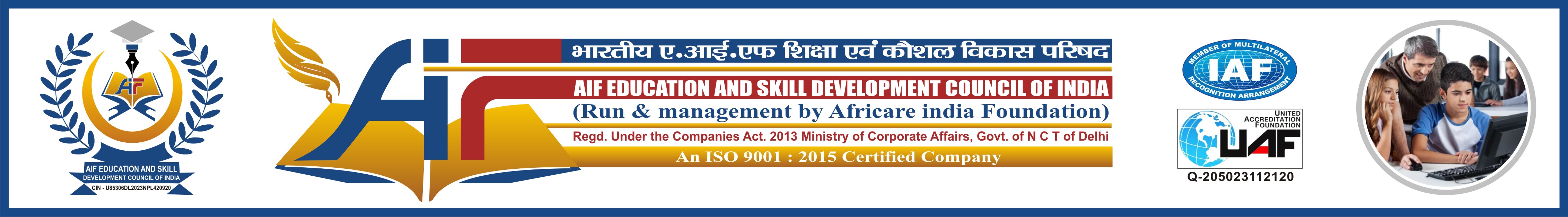 Education is the best powerful weapon which can be used tochange the word. This is the only tool to remove the darkness of ignorance formthe society. Information technology has become the backbone of all theproductive activities today. It is not only the fastest growing industry but itis the most successful and most profitable industry also. For the very purposewe have initiated a word wise program named AIF EDUCATION AND SKILL DEVELOPMENT COUNCIL OF INDIA. Throughthis program we are imparting It Education and It Education and It enableservices through a worldwide educational network. On the completion ofsuccessful years of incredible performance.